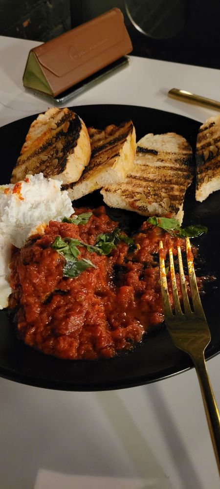 Served with san marzano tomato sauce, ricotta and grilled ciabatta.